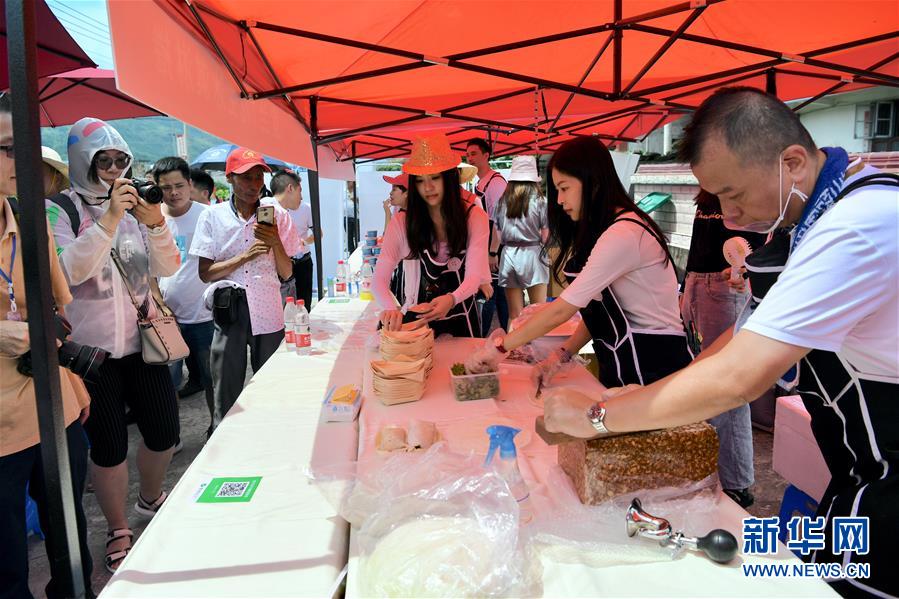 7月13日,人们在首届两岸花生节上观看商家制作花生冰淇淋卷。新华社记者 姜克红 摄
