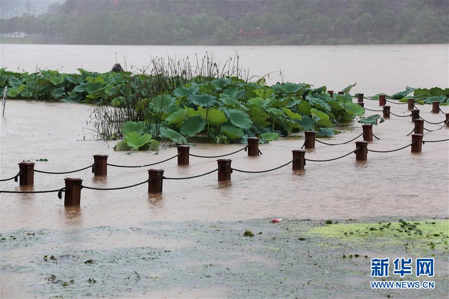 安徽黄山市屯溪区南滨江公园的栈道被淹(7月13日摄)。 新华社发(施广德 摄)