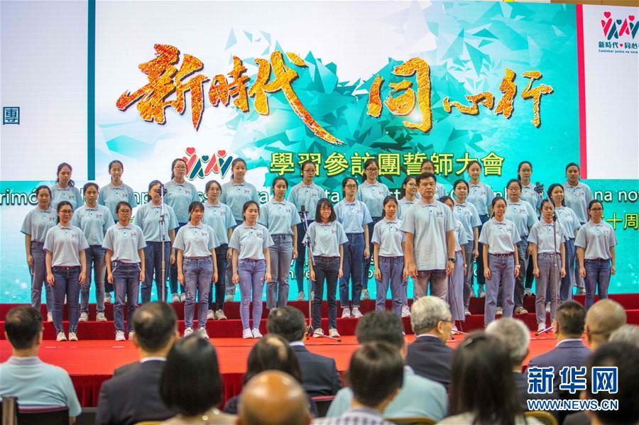 7月13日,澳门青少年代表参加誓师大会。 新华社记者 张金加 摄