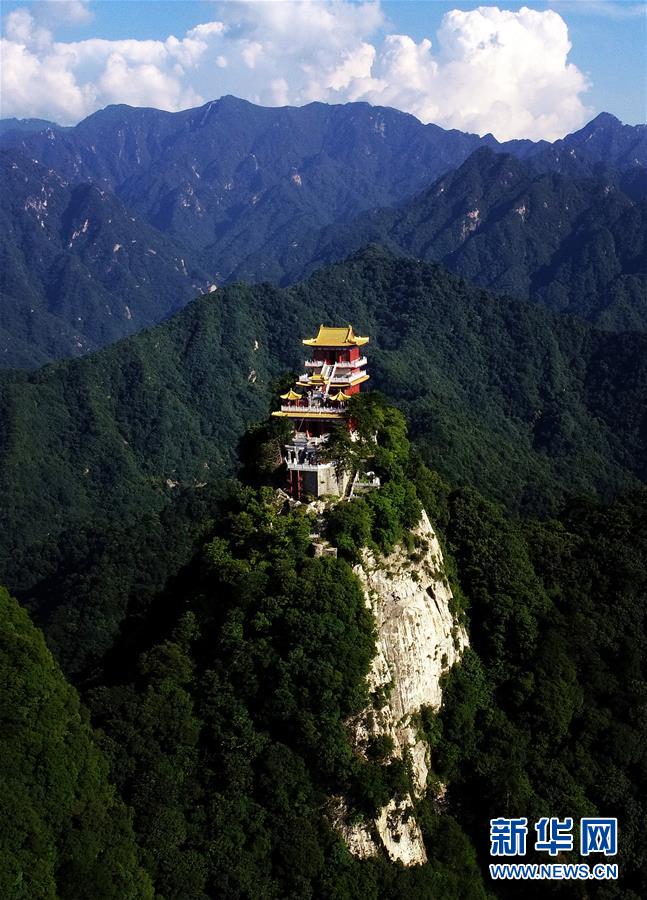 7月13日无人机拍摄的西安南五台五峰之一的灵应台。新华社记者 刘潇 摄