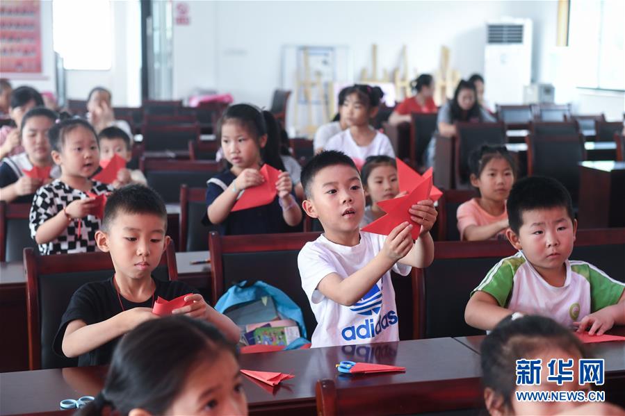 7月14日,青草坞村的孩子们在上暑期趣味剪纸课。新华社记者 徐昱 摄