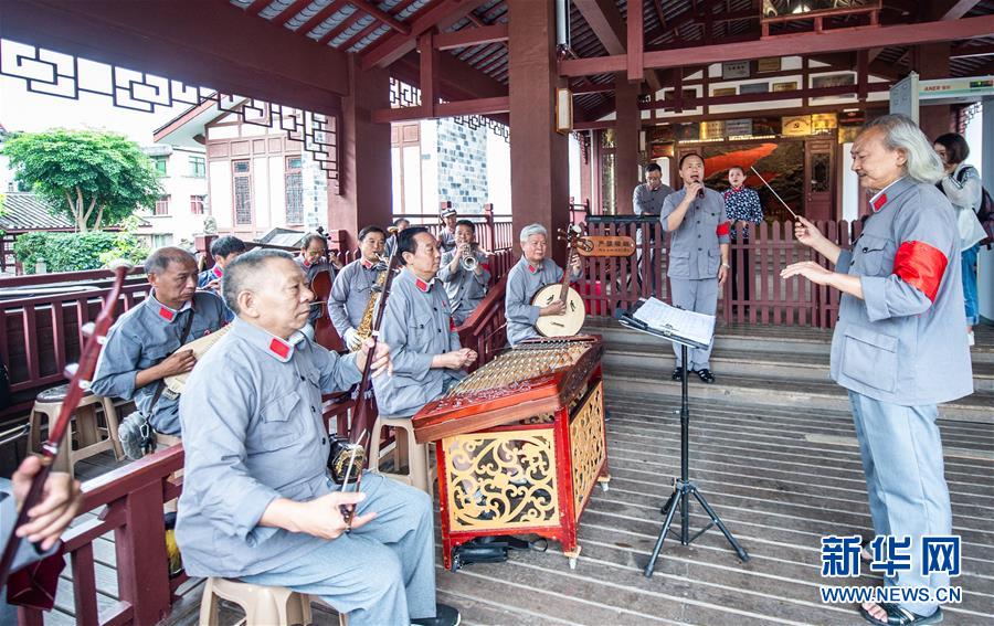 习水县四渡赤水纪念馆艺术团成员在演奏乐曲(7月6日摄)。新华社记者 陶亮 摄