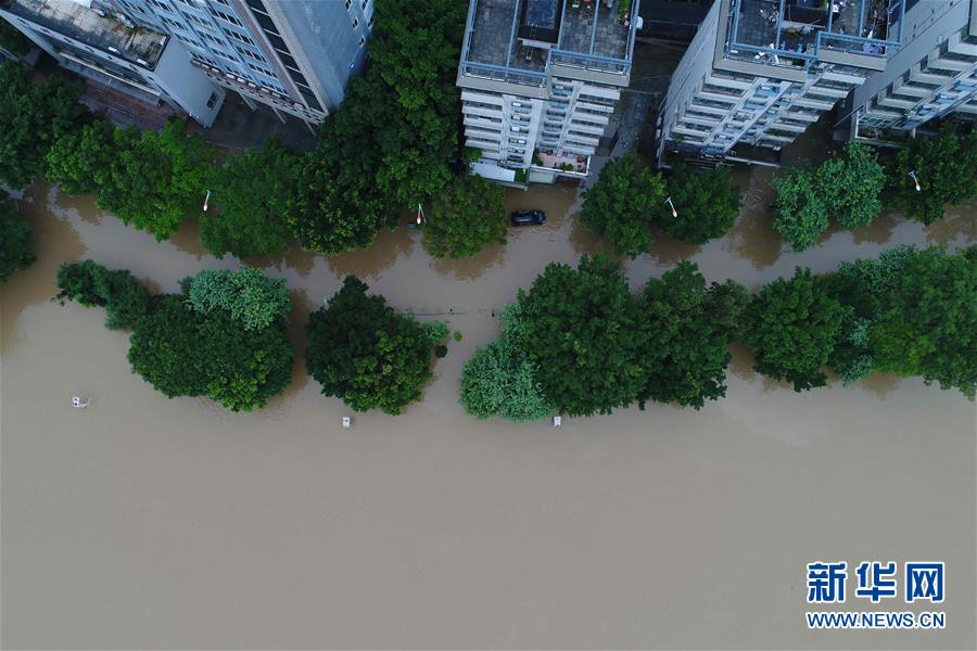 7月14日,柳州市滨江西路被上涨的洪水淹没(无人机拍摄)。新华社记者 黄孝邦 摄
