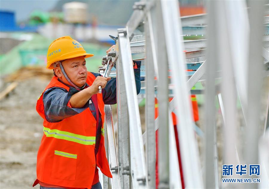 7月14日,在广西柳州市融安县雅瑶乡大琴村,供电局抢修人员在更换被雷电击坏的变压器。 连日来,受强降雨影响,广西柳州市融安县部分地区出现严重洪涝灾害,致农作物受灾面积1097.79公顷,近万人受灾。目前,当地党委政府组织党员干部和受灾群众开展生产自救和灾后恢复工作。 新华社记者 黄孝邦 摄
