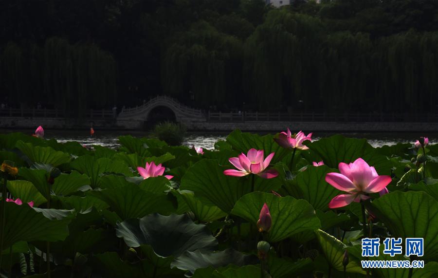 这是7月14日拍摄的济南大明湖内的荷花。新华社记者 王凯 摄