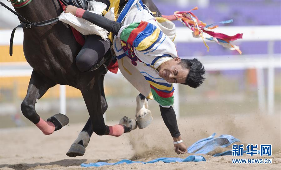 7月15日,西藏代表团选手表演民族传统马术。 当日,在内蒙古呼和浩特市举办的第十一届全国少数民族传统体育运动会马上项目进入第四个比赛日。 新华社记者沙达提摄