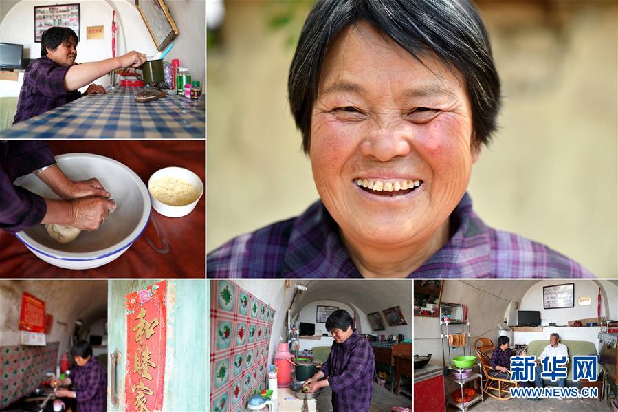 王秀英,女,1949年出生,山西省长治市武乡县鸦烟村人。王秀英和丈夫董风唐享受民政救助。老两口在村里种地、养鸡、放羊,2018年家庭收入达到1万4千多元。王秀英说,现在各项政策都好,我们在村里生活得挺好的。 右上:王秀英肖像;左上:王秀英在家中收拾;左中:王秀英在和面;左下:王秀英在做午饭;下中:王秀英在洗菜;下右:王秀英(左)和丈夫董风唐在家中聊天(拼版照片,6月11日摄)。 地处晋东南的山西省长治市,位于由太行山、太岳山环绕而成的上党盆地中。在群山中、崖壁上,许多村庄自然条件恶劣,基础设施落后,脱贫致富是大山深处人们的迫切心愿。 近年来,一场场脱贫攻坚战,在一个个深山村打响。政府全力探索脱贫路径的同时,山区百姓因地制宜,靠自己的双手和智慧走上致富路,交出了一份扎实的脱贫答卷。 记者在太行山、太岳山一路寻访,记录下多位70岁老人的生活。这些共和国的同龄人,亲历了山乡的巨变,见证着长治山区脱贫攻坚伟大工程的一步步推进。 新华社记者 詹彦 摄