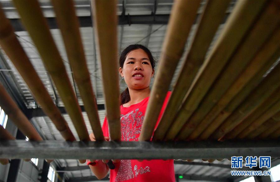 7月15日,在广西柳州市融安县融嘉工艺有限公司扶贫车间,工人在生产线上作业。新华社记者 黄孝邦 摄