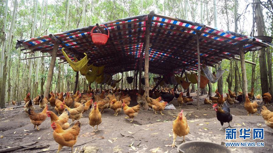 这是钦州市钦南区那思镇村民在山头林地发展“沉香鸡”养殖的鸡棚(7月15日摄)。 近年来,广西钦州市钦南区那思镇利用山头林地资源积极引导当地贫困群众发展林下“沉香鸡”养殖。养殖产品深受粤港澳消费者青睐,助力山村贫困户“脱贫摘帽”。 新华社记者 张爱林 摄