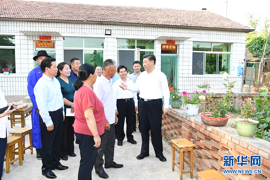 7月15日,中共中央总书记、国家主席、中央军委主席习近平赴内蒙古自治区考察调研。这是习近平在赤峰市喀喇沁旗河南街道马鞍山村了解情况。 新华社记者 谢环驰 摄