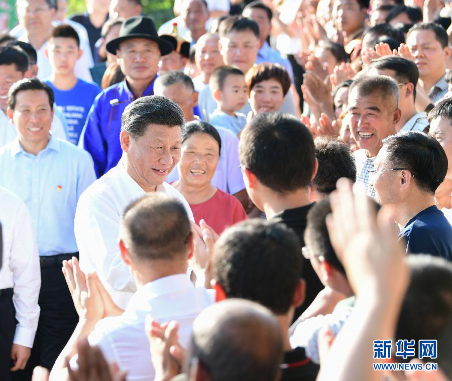 7月15日,中共中央总书记、国家主席、中央军委主席习近平赴内蒙古自治区考察调研。这是习近平在赤峰市喀喇沁旗河南街道马鞍山村同群众亲切握手。 新华社记者 谢环驰 摄