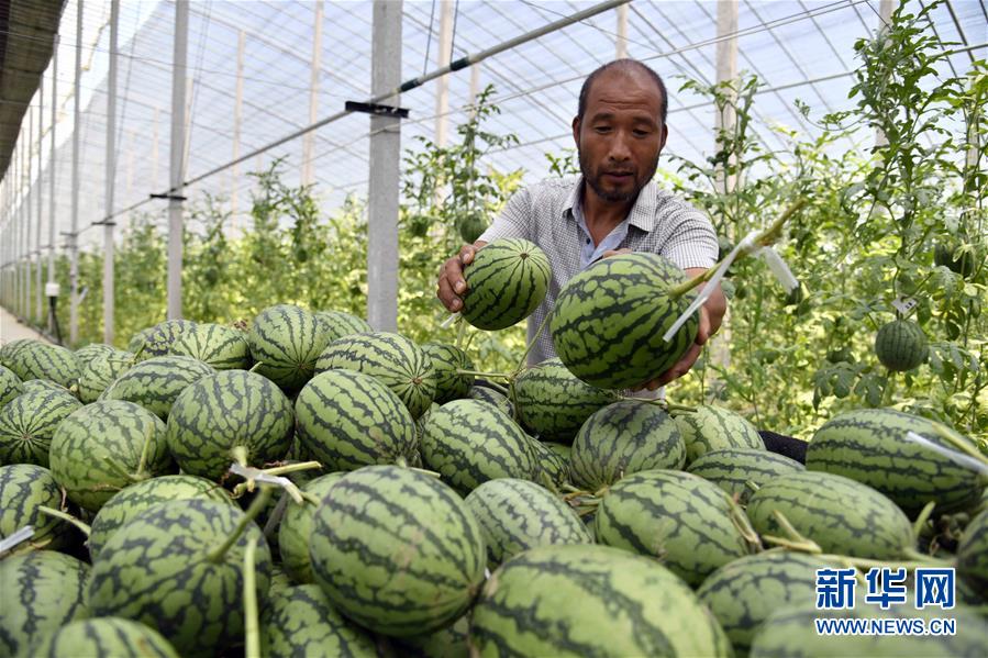 7月16日,在潍坊市寒亭区郭牌农业种植示范园,工作人员将西瓜装车。 新华社记者 郭绪雷 摄