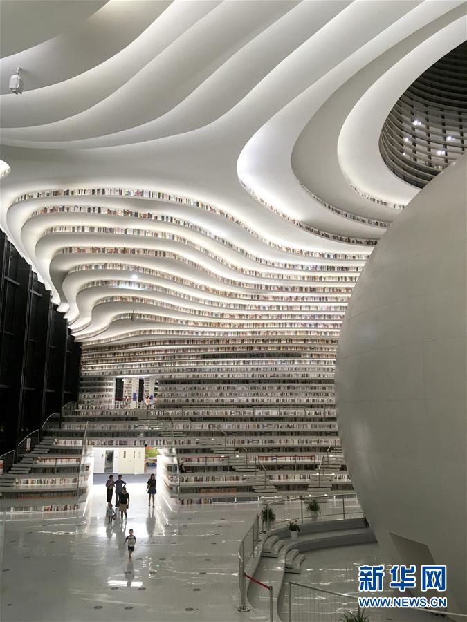 7月16日晚拍摄的天津滨海新区图书馆。 近日,为进一步丰富市民夜间文化生活,天津市滨海新区文化和旅游局推出公共文化服务的利民举措。从7月8日开始,天津滨海新区图书馆、滨海新区博物馆和滨海新区美术馆等文化场馆开展夜间延时服务,延时开放至22点至22点30分。 新华社记者岳月伟摄