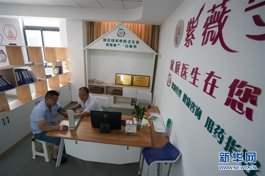 7月16日,在宿迁市宿豫区新庄镇杉荷园社区卫生室,医生关宗卫在给家庭医生签约群众检查身体。 近年来,江苏省宿迁市通过“实施村居卫生室标准化建设,提高设备配备标准,提升医疗服务水平,加强乡村医生队伍建设,大力推进家庭医生签约服务”等措施,持续提升村居卫生机构服务水平和质量,不断改善群众就医环境,增强群众满意度和获得感,织好基层医疗卫生服务“网底”。 新华社记者 季春鹏 摄