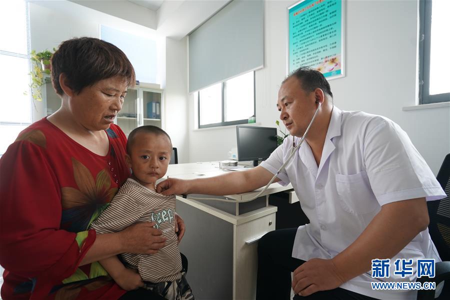 7月16日,在宿迁市宿豫区新庄镇杉荷园社区卫生室,医生关宗卫在给小患者诊疗。 近年来,江苏省宿迁市通过“实施村居卫生室标准化建设,提高设备配备标准,提升医疗服务水平,加强乡村医生队伍建设,大力推进家庭医生签约服务”等措施,持续提升村居卫生机构服务水平和质量,不断改善群众就医环境,增强群众满意度和获得感,织好基层医疗卫生服务“网底”。 新华社记者 季春鹏 摄