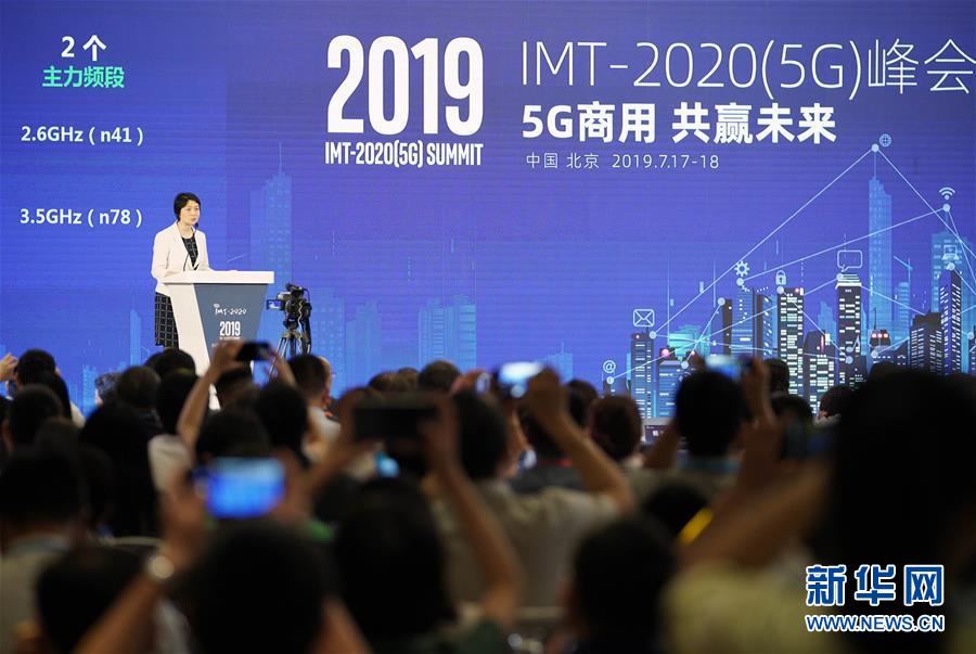 7月17日,在北京举行的2019年(暨第七届)IMT-2020(5G)峰会上,IMT-2020(5G)推进组组长王志勤致辞。 7月17日,由工业和信息化部指导,IMT-2020(5G)推进组联合中国通信标准化协会共同主办的2019年IMT-2020(5G)峰会在北京开幕,本次峰会以“5G商用 共赢未来”为主题,邀请工信部领导以及数十家国内外主流移动通信和行业应用单位专家500多人参加会议,集中探讨面向商用的5G标准、产业与应用等最新进展与发展趋势。 新华社记者 才扬 摄