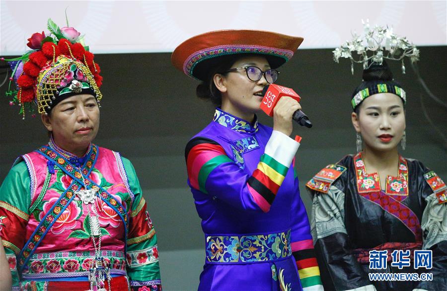 7月16日,一位来自青海的手工艺人(中)在活动上演唱民歌。 当日,由中国妇女发展基金会和UCCA尤伦斯当代艺术中心联合主办的“约会天才妈妈——你好毕加索公益之夜”活动在北京举办。来自云南、青海、贵州等地区的非遗女匠人们,同与会嘉宾共同发布了由她们制作的以毕加索的艺术风格为灵感、融合中国非遗艺术的手工艺品,包括景德镇骨瓷瓷盘、云南掇花绣抱枕、贵州丹寨县蜡染丝巾、苗族蜡染笔记本等。 新华社记者 张玉薇 摄