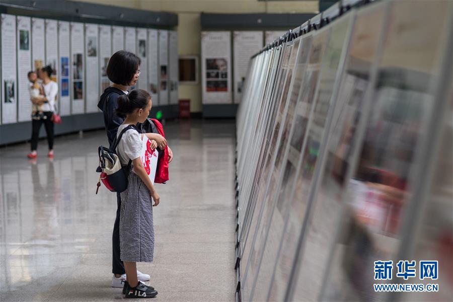 7月17日,观众在玉溪市文化产业博览会上参观非遗图片展。 当日,2019玉溪市文化产业博览会在云南省玉溪市博物馆开幕。本届博览会为期5天,设有云南省国家级非遗文化展区、玉溪工匠文化展区等,免费向公众开放。 新华社记者胡超 摄