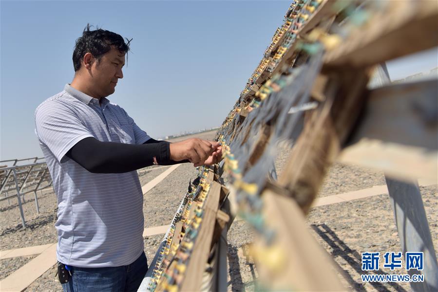 7月17日,在新疆吐鲁番自然环境试验研究中心,检测人员在材料静态曝晒区整理样品试验架。 素有“火洲”之称的新疆吐鲁番市以极热、极干的气候,近年来吸引国内外众多车企、材料制造企业及科研院所纷至沓来,使这里成为国内汽车热区试验首选之地。 2018年,共有240余家国内外汽车企业、各类材料制造厂商及科研院所在吐鲁番进行热区试验。目前,在新疆吐鲁番自然环境试验研究中心,共有3万余件产品和零部件接受曝晒试验,200余件样品接受土壤腐蚀试验。 新华社记者 丁磊 摄