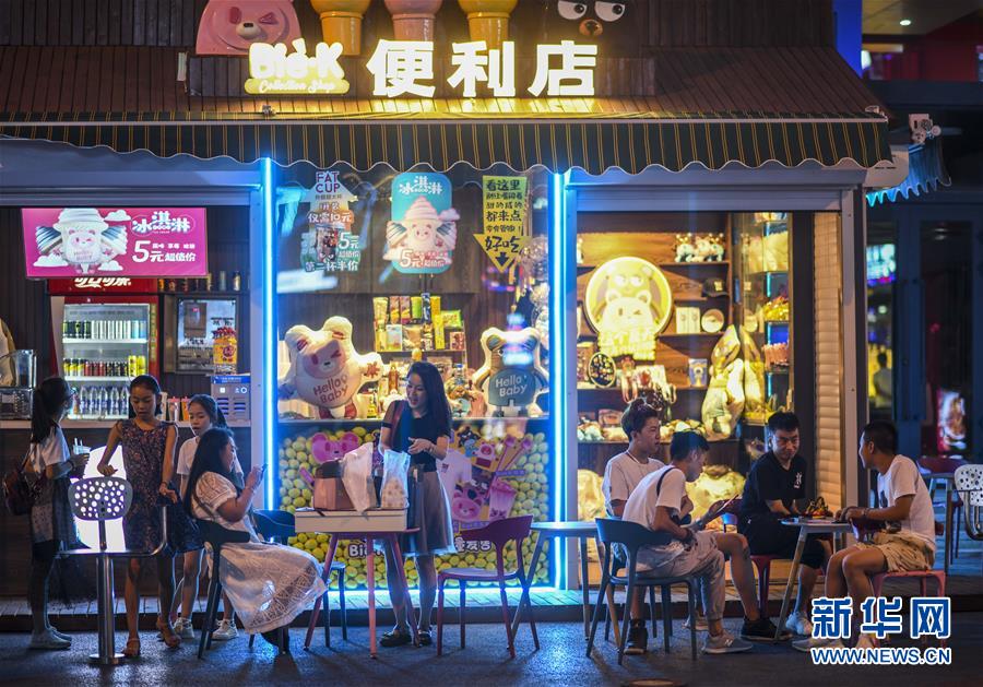 游客在乌鲁木齐一家便利店前小憩(7月14日摄)。 进入7月,乌鲁木齐的夜间经济逐渐升温。市民和游客外出购物休闲、品味美食,享受凉爽夏夜的闲适生活。 新华社记者 赵戈 摄