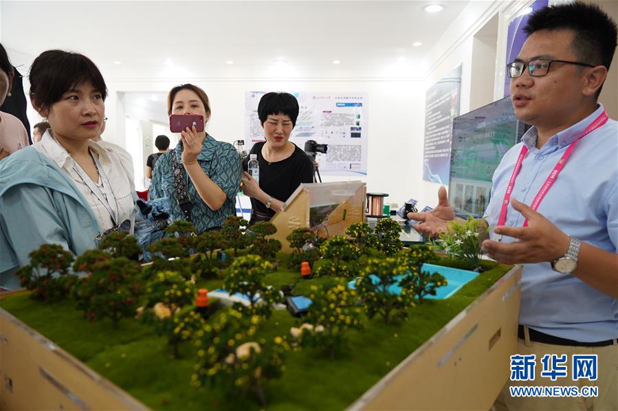 工作人员在介绍智能农业养殖、种植系统(7月17日摄)。 7月18日,江西国际移动物联网博览会将在江西鹰潭龙虎山华泉小镇举行。博览会前夕,充满智能科技的华泉小镇向观众们展示了移动物联网将在未来给百姓生活带来的诸多便利。 新华社记者 周密 摄