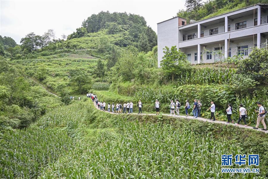 参加再走长征路记者团的记者在位于重庆市綦江石壕镇的当年中央红军走过的长征路上进行体验式采访(7月15日摄)。新华社记者 刘潺 摄