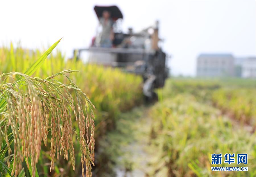 7月17日,湖南省衡阳市衡阳县西渡镇梅花村村民在收割早稻。新华社发(夏文辉 摄)