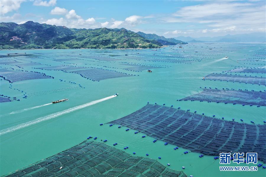 7月17日,福建省霞浦县下浒镇海上养殖区渔船在航道内行驶(无人机拍摄)。 2018年7月下旬以来,福建省宁德市霞浦县全力推进海上养殖综合整治,清退海上禁养区渔业设施,拓宽海上航道,用新型材料替代破旧渔排和白色泡沫球,促进海洋渔业转型升级。截至目前,霞浦县已清退禁养区渔排3万余口,藻类清退5千余亩,渔排改造累计下水4.2万口,藻类改造累计下水19.4万亩。 新华社记者姜克红摄