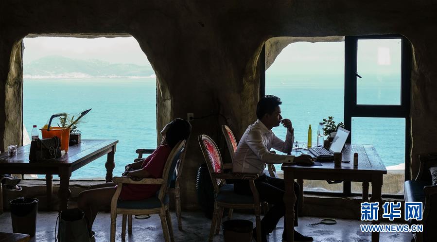 7月17日,游客在南麂岛一家悬崖民宿酒店的客厅内休憩。 新华社记者 徐昱 摄