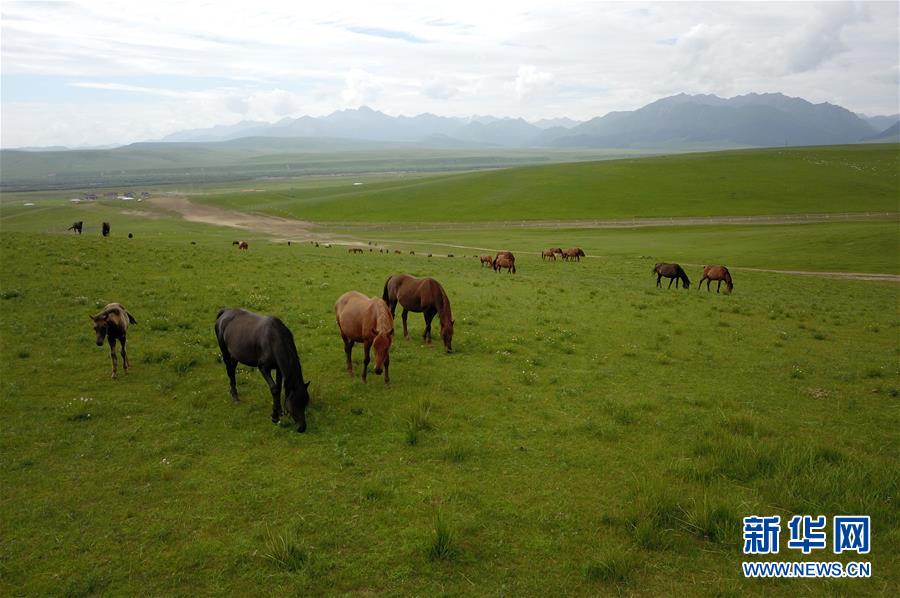 这是7月17日无人机拍摄的山丹马场上的马群。 盛夏七月,位于甘肃省河西走廊中部、祁连山北麓的山丹马场绿草如茵,成群的骏马在马圈和草原休息吃草,十分壮观。据介绍,山丹马场从西汉时期就开始养马,至今已有2000多年的历史。 新华社记者 范培珅 摄
