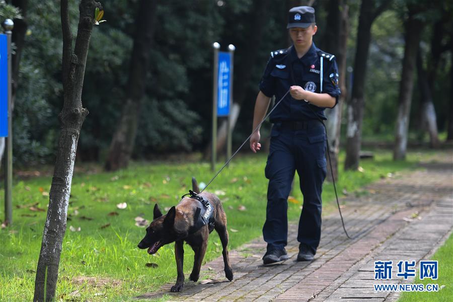 7月18日,警犬在表演警犬追踪。 当日,湖南省公安厅在警犬基地举行“警营开放日”活动,邀请放假的孩子们进警营参观、学习。民警为孩子们展示了警犬服从、追踪、车辆搜爆、箱包搜毒、血迹搜索等基础课目。 新华社记者 薛宇舸 摄