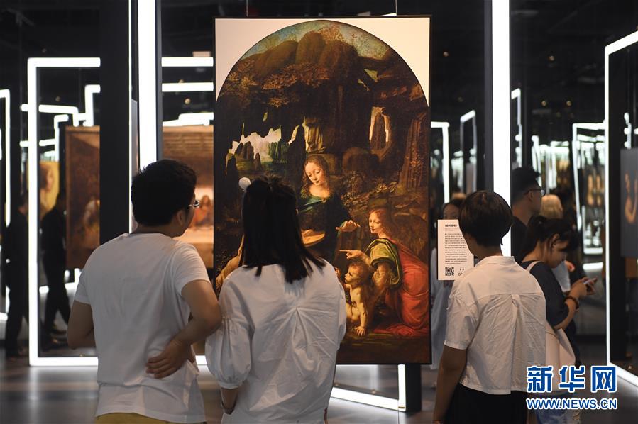 7月18日,观众在参观展览。 近日,为纪念达芬奇逝世500周年,“达芬奇IN成都”全球光影艺术体验大展对公众开放。此次展览采用了全球先进的新媒体视听数字技术,带领观众走进达芬奇的世界。 新华社记者 刘坤 摄