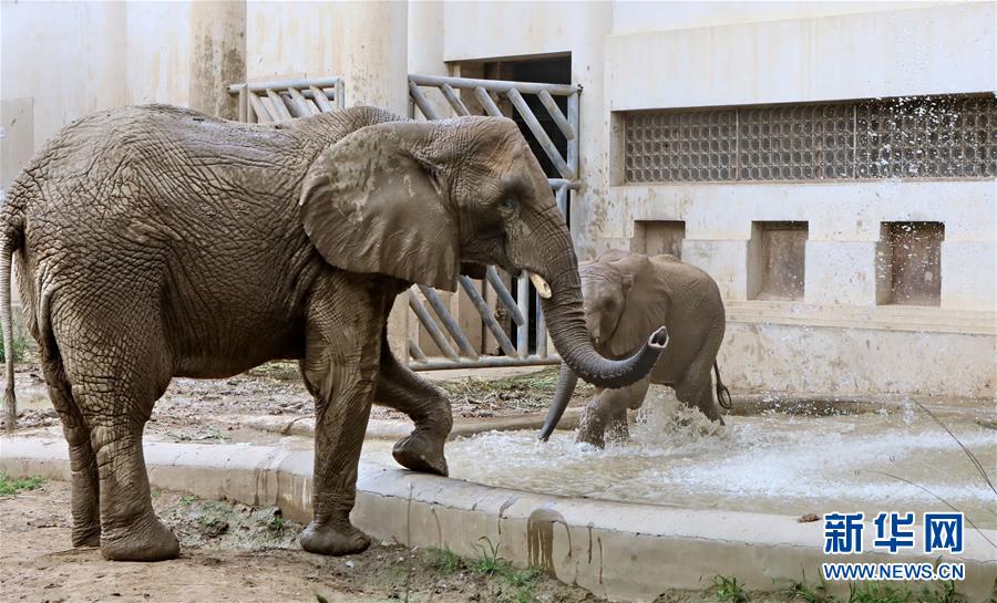 7月18日,在北京动物园,大象在水池内玩耍。新华社记者 李欣 摄