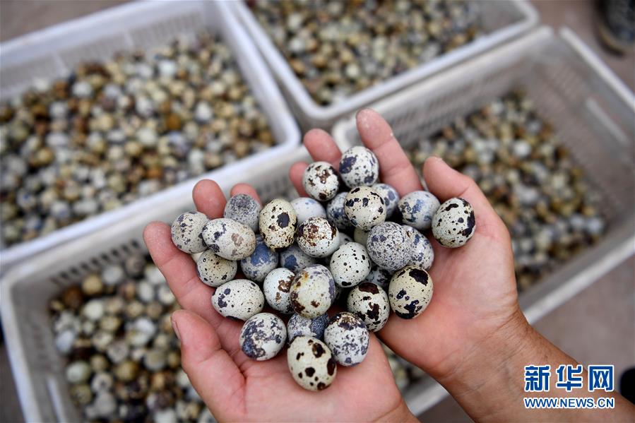 7月18日,明光市桥头镇农户展示鹌鹑蛋。新华社发(黄博涵摄)