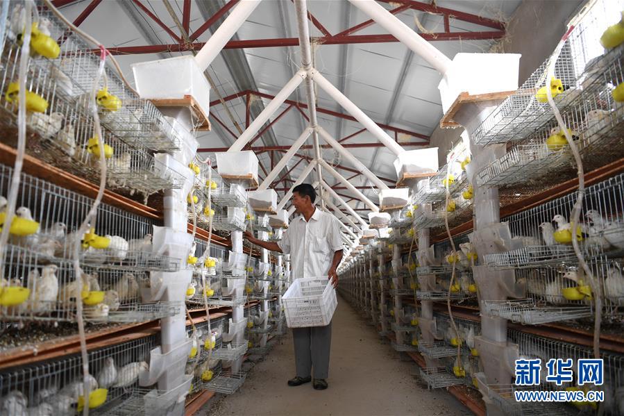 7月18日,明光市桥头镇农户检查鹌鹑生长情况。新华社记者刘军喜摄