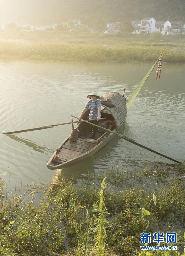 7月18日,渔模邵竹莲配合摄影爱好者进行情景表演。 新华社记者 翁忻旸 摄