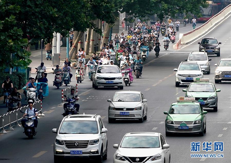 在郑州市花园路上,一些电动车驶上了机动车道(7月9日摄)。 新华社记者 李安 摄