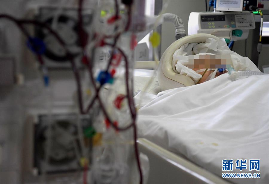 郑州市民张女士在郑州人民医院重症监护室内接受治疗,最终抢救无效去世(7月10日摄)。 新华社记者 李安 摄