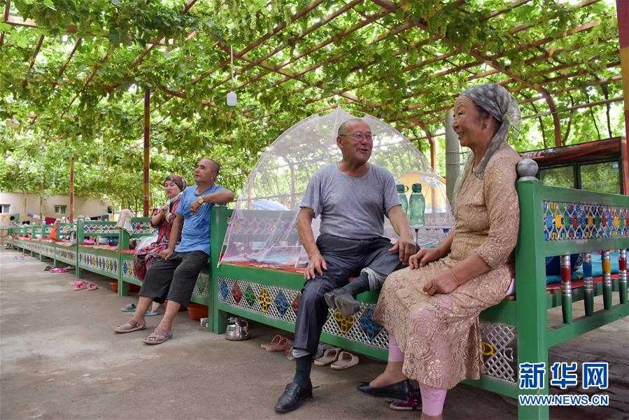 7月18日,在吐鲁番市“沙疗小镇”,游客在一家民宿中休息。新华社记者 丁磊 摄