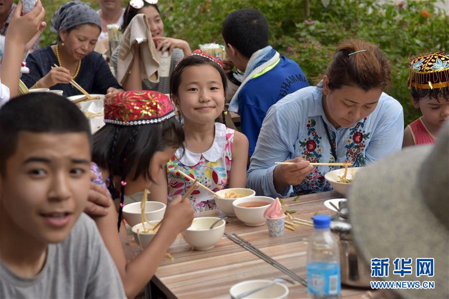 7月18日,游客在吐鲁番市“沙疗小镇”就餐。新华社记者 丁磊 摄