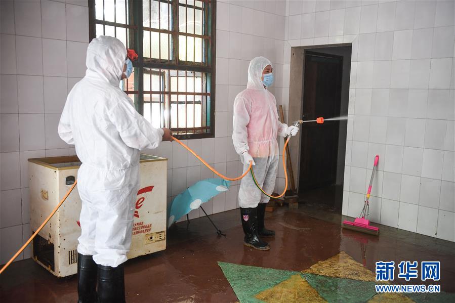 在祁阳县龙山街道龙山社区,祁阳县疾控中心工作人员在居民家中消毒(7月16日摄)。新华社发(陈思汗 摄)