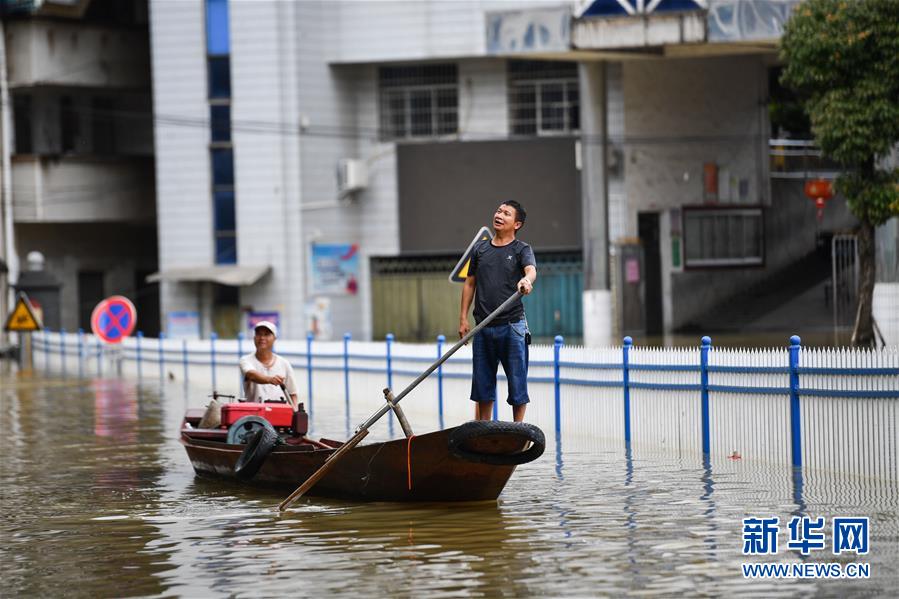 湖南永州市冷水滩区杨家桥街道一社区居民自驾船只义务转移群众和物资(7月14日摄)。新华社发(陈思汗 摄)