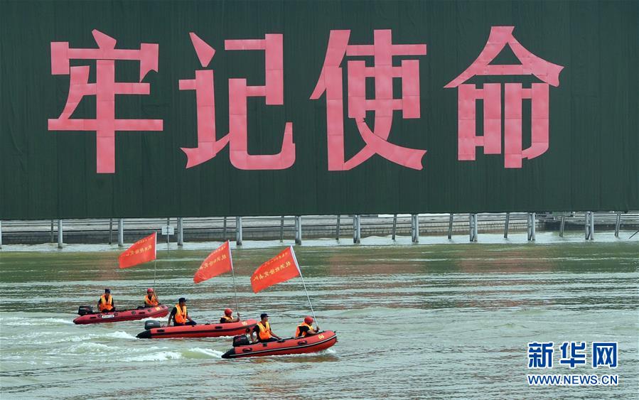 7月19日,参演人员进行橡皮艇驾驶演练。 新华社记者李嘉南摄