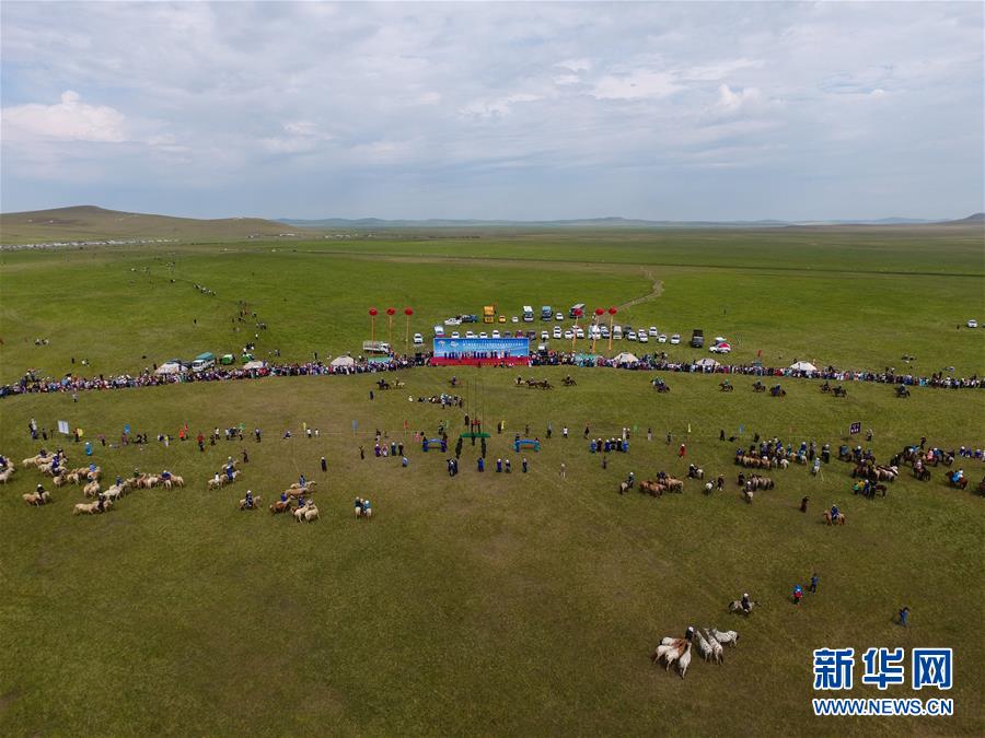 内蒙古东乌珠穆沁旗草原举行马文化活动 这是7月19日无人机拍摄的活动会场。 当日,“四季乌珠穆沁”马文化主题活动在内蒙古东乌珠穆沁旗草原举行,活动为期两天,将进行走马、套马、驯马、马上拾物等比赛和马具展览、黄骠马评选等活动。 新华社记者 刘磊 摄
