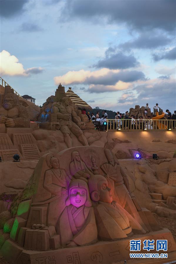 7月19日,游客在观赏沙雕。 新华社记者 徐昱 摄