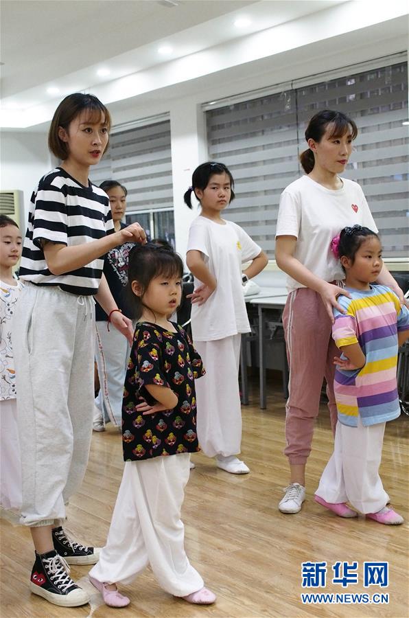 7月19日晚,上海如意越剧团的老师在矫正孩子们的动作。 当晚,在上海市徐汇区凌云街道社区文化活动中心的一间教室里,十几个娃娃跟着老师学习越剧表演的台步和手势。 据了解,每周五的晚上,上海如意越剧团的演员都会在这里教孩子们学习越剧表演的基本功,亲身体验传统戏曲艺术的魅力。 新华社记者 任珑 摄
