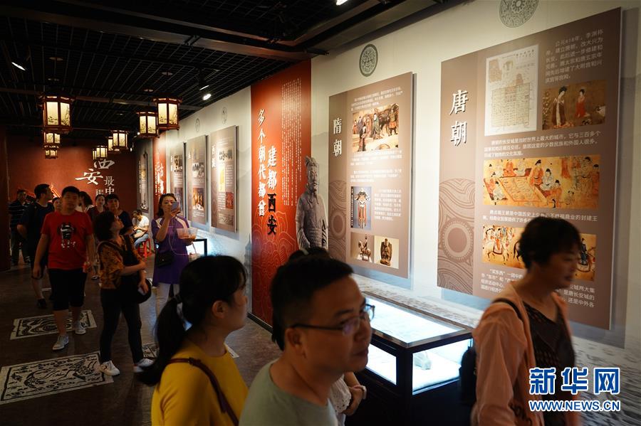 7月19日,游客在西安回民街上一家历史文化展览馆内参观。 暑期以来,西安市各大旅游景点人气火爆。大量游客前来游览历史文化景区,品尝传统特色美食,感受千年古都厚重与时尚交融的独特魅力。 新华社记者 邵瑞 摄