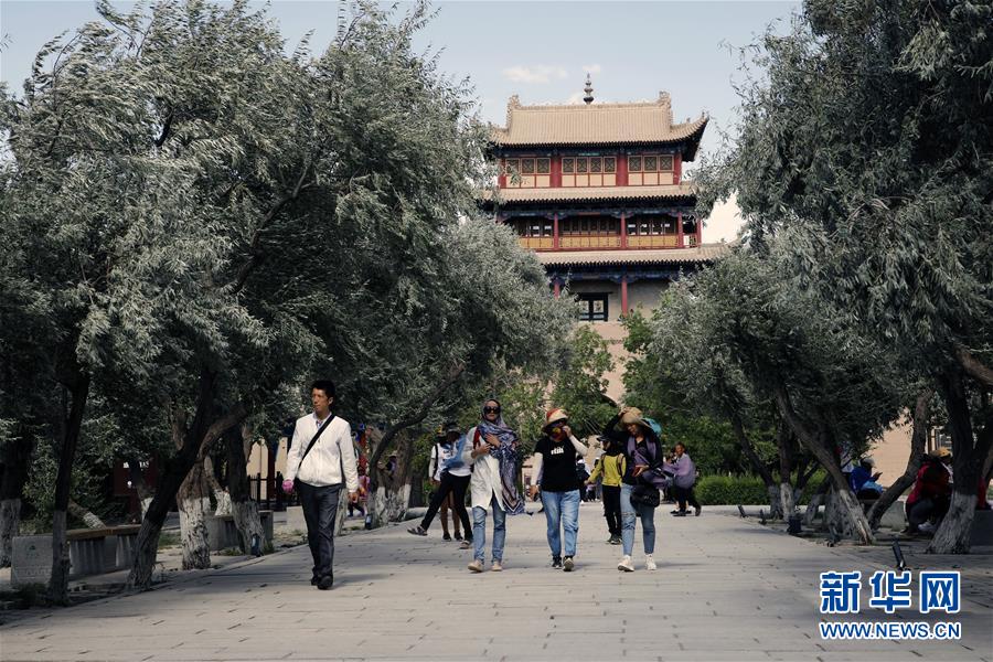 7月18日,游客在嘉峪关关城景区游览。 进入暑期,甘肃省嘉峪关市迎来旅游旺季,各旅游景区游人如织。2019年,嘉峪关市推出夜游关城景区产品,新开展现丝绸之路文化内涵的嘉峪关方特丝路神画主题乐园,加快文化旅游产业融合发展。 新华社发(张智敏 摄)