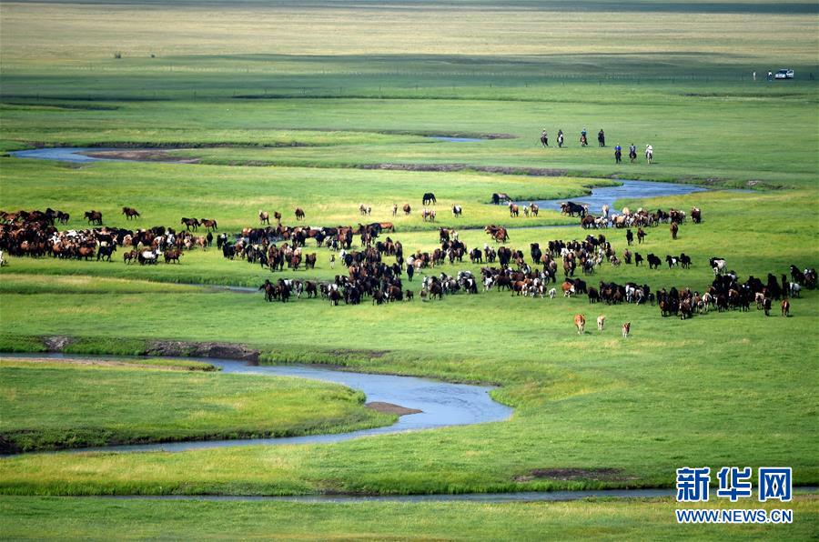 7月20日,马群在乃林高勒草原上奔驰。新华社记者 任军川 摄