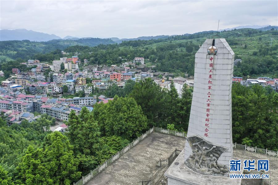 在重庆酉阳县南腰界镇拍摄的中国工农红军二、六军团会师纪念塔(7月17日无人机拍摄)。 新华社记者 刘潺 摄